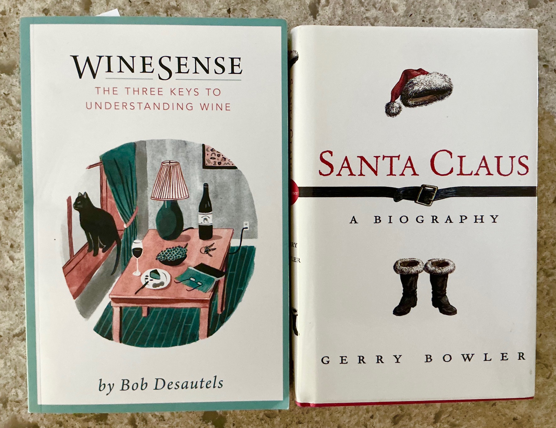 Went downtown again today, short visit to the bookstore. Picked up two books: one is Winesense, a general book about wine (a topic I enjoy reading about). The other is a “biography” of the fifth and latest deity in the Christian pantheon. The author explains the origin, the ads, the political uses of, and the commercialization of the Fat God (which he acknowledges is one of the two deities that rule over the Christmas season). Then we did some shopping for groceries in Loblaws before coming home when I iced my knee.